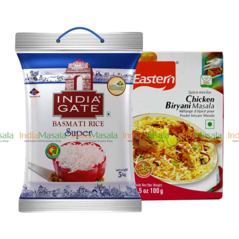 COMBO PACK EASTERN CHICKEN BIRYANI MASALA - INDIA GATE BASMATI RICE PREMIUM