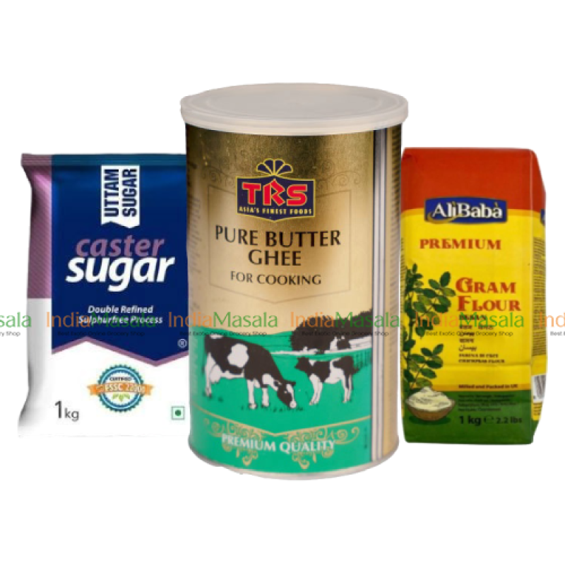 COMBO PACK TRS PURE BUTTER GHEE - ALI BABA GRAM FLOUR - WHITE CASTER SUGAR