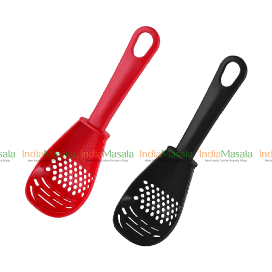 Practical Design It is a combination of egg whisk, egg separator, slotted spoon, handy colander (drain the vegetable and short pastas like macaroni, rotini from the pot and so on), potato masher, ginger grinder, garlic grinder, daikon grater (for tempura dipping sauce), baby food masher, spatula when mixing salad, cooking gadget when making stir-fry dishes, avocado masher when making guacamole, When scooping out food from a cooking pot or frying pan, it can also filter out excess water or oil,