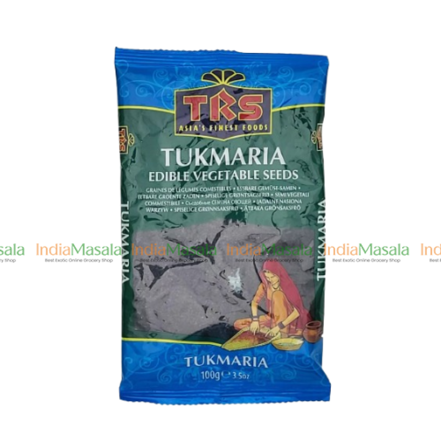 TRS TUKMARIA BASIL SEEDS INGREDIENTS Chia Seeds Sabja Sabja Ginjalu Kamakasturi Tukmaria also commonly known as Basil Seeds or Chia Seeds ALLERGENS See ingredients in bold STORAGE ADVICE Store in a cool dry place NUTRITIONAL VALUES Per 100g Per 100ml ENERGY 500 kcal FATS 200g SATURATED FATS 0g CARBOHYDRATES 60g SUGARS 0g PROTEINS 1g SALT 160g